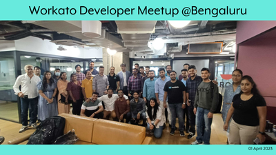 Our first Developer Connect event, “Weekend with Workato Workbots” was a heartening success! We had a fantastic turnout, with many developers coming together for an in-person Meetup in Bangalore.