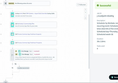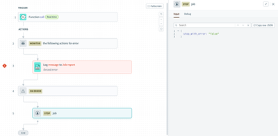If you're referring to the error monitor, it doesn't automatically mark a job as failed in the job report. The job viewer will still show which action had the error, but the job could be configured to stop successfully or failed.